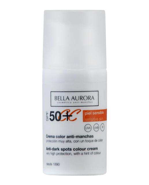 La Crema Color SPF50+ Anti-Manchas Piel Sensible de Bella Aurora ofrece una protección muy alta frente a las radiaciones UVA, UVB e infrarrojos. Gracias a su combinación de filtros de amplio espectro, garantiza una óptima protección diaria. Su formulación incluye activos anti-manchas que atenúan las manchas existentes y previenen la aparición de nuevas, logrando una piel uniforme y sin imperfecciones. Este producto es un complemento imprescindible para cualquier tratamiento anti-manchas. Además, cuenta con el sistema Color-Adapt, que proporciona un toque de color que se adapta al tono de cada piel y difumina sus defectos. Su acabado es mate, aterciopelado y brinda un bronceado natural. Es resistente al agua, no contiene parabenos y su perfume es hipoalergénico.